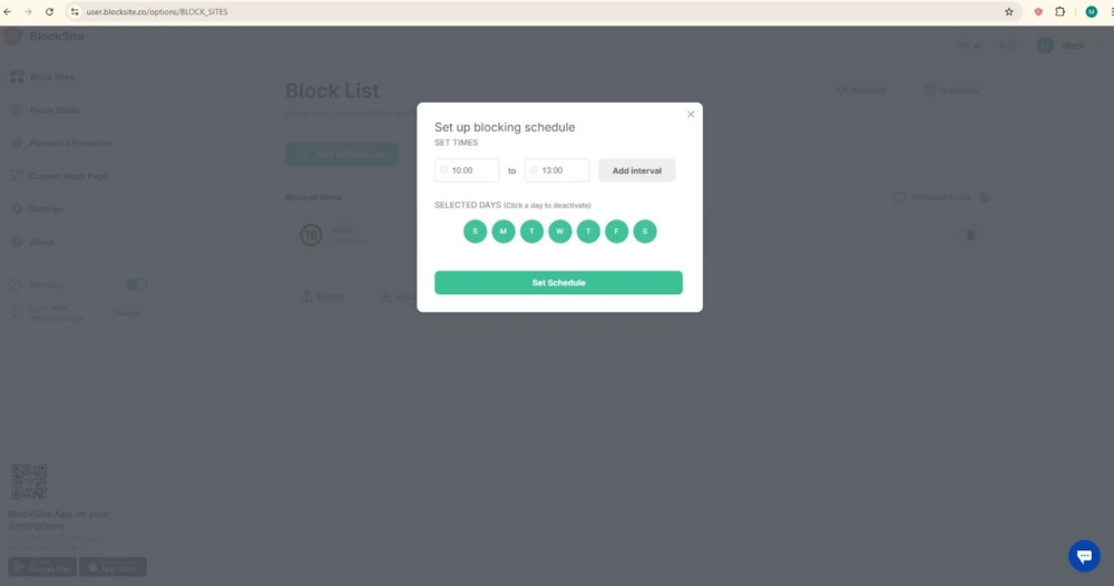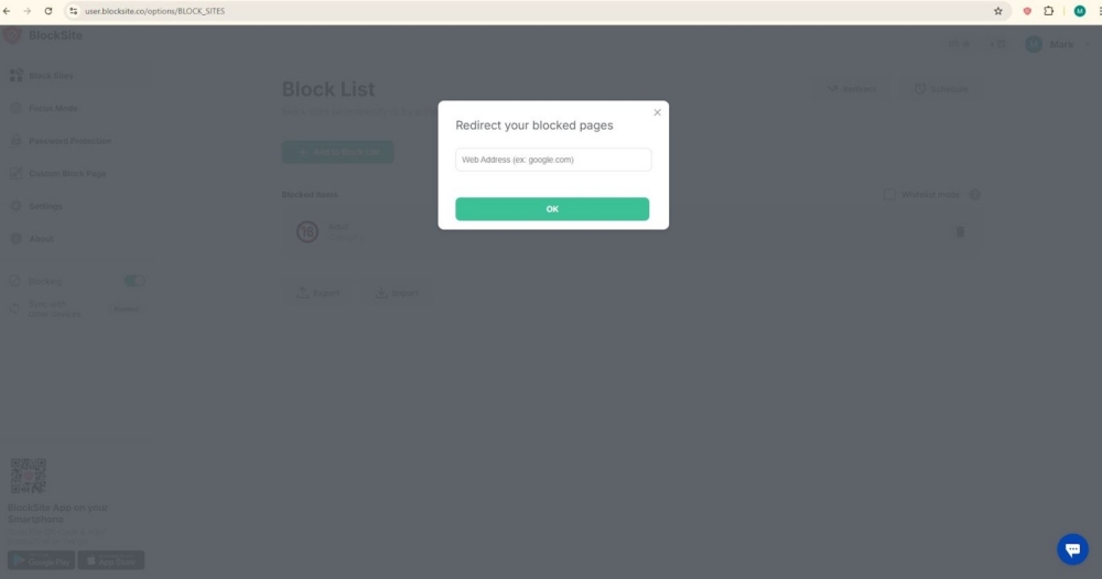 The tool comes with a redirect feature that can send a user away from a blocked site automatically. For collaboration, this is a simple way to turn a weak moment into a helpful next step.